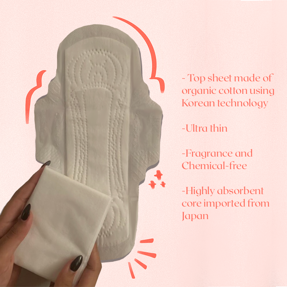 - Extremely soft top layer- made of pure cotton using Korean technology our sanitary napkins are manufactured with quality and hygiene assurance kept on the radar.